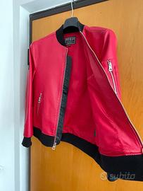 Giacca biker Guess traforata di similpelle. Tasche laterali con zip e tasca braccio sinistro Chiusura con zip. Segni di usura vicino la tasca sinistra. Taglia S ma va bene anche per chi veste M.