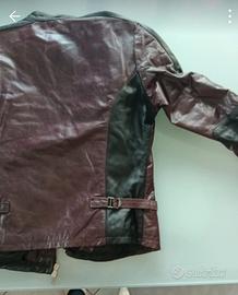 Giacca in vera pelle bicolore Vivian Made in Italy taglia L. Bellissimo modello dal design grintoso con inserti bordeaux e neri, perfetto per uno stile biker o casual ricercato. La pelle è morbida e di alta qualità (Vera Pelle), con fodera interna trapuntata in 100% viscosa. Capo autentico artigianale italiano in ottime condizioni, curato nei minimi dettagli e con zip perfettamente funzionanti.