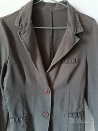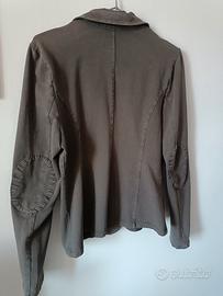 blazer dal taglio sportivo e versatile, color fango (un marrone freddo tendente al grigio). È un capo perfetto per un look "business casual" o per il tempo libero grazie al tessuto morbido, simile al jersey.