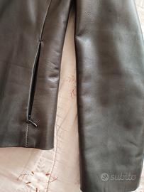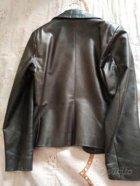 Vendesi giacca blazer in vera pelle nera, tre bottoni, due tasche con zip, materiale nappa effetto liscio, taglia 42