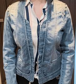 Giacca blazer giubbino jeans donna, taglia L, marca Hozone, con borchie sulle spalle, usato veramente poco, tenuto in ottimo stato