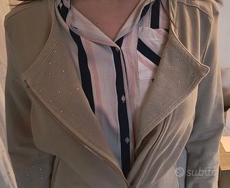 Giacca blazer in felpa garzata, Gas, taglia M, colore beige, brillantini su fondo maniche e sul davanti, usata poco e tenuta in ottimo stato