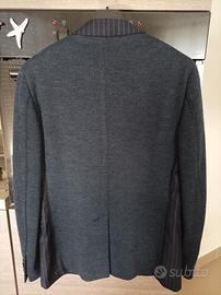 Favolosa giacca blazer destrutturata invernale da uomo SALVATORE FERRAGAMO, taglia 48, colore blu notte, a 3 bottoni con taschino lato cuore, petto rigato e maniche e retro a tinta come da foto.
