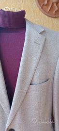 Il capo si distingue per un elegante motivo o micro operato /spina di pesce in tonalità neutre, chiusura con due bottoni
