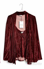 Giacca/coprispalle color bordeaux/porpora, in velluto liscio sfoderato. Nuova con cartellino. Taglia unica. Abbinabile al suo top. Sconto se presi insieme. Ritiro a Roma/Nuovo Salario o sconto sui set.