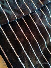 Elegante giacca da sera del marchio Reserved, in velluto nero gessato / millerighe con sottili righe color argento metallizzato con glitter (purtroppo non facili da fotografare!). Taglio “boyfriend” destrutturato e abbastanza dritto, spalline leggermente imbottite, collo con revers sottili a scialle, tasche sul davanti. Si chiude con un gancetto. Nuova con etichetta, taglia EU36=IT40. Prezzo d’origine 60 euro