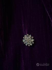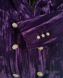 Giacca con spalline interne, bottoni con pietre argento e dettagli pietre che si ripete nelle maniche, utlizzabile anche come vestito in quanto lunga, mai utilizzata.