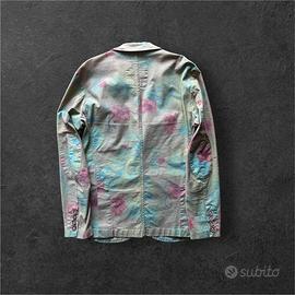 La giacca presenta una base color salvia con una bellissima fantasia floreale sfumata nei toni del rosa e del turchese, che le dona un tocco artistico e vintage. Perfetta per chi cerca un look distintivo, da abbinare sia con un outfit casual che più elegante.