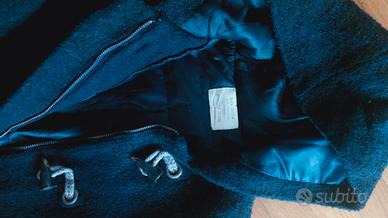 Giaccone corto Zara modello Montgomery in panno color blu scuro con alamari, taglia 12 anni, con cappuccio e zip
