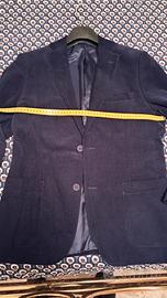 Bellissima giacca blu due bottoni in velluto a coste strette mai indossata. Vestibilità slim è una L scarsa. Vendo per taglia errata