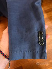 Giacca marca Boggi Milano, di colore blu, 56% lino 44% cotone, taglia 48, come nuova, acquistata in boutique euro 380,00, ottima vestibilità, spalle 45 cm, maniche 63 cm, circonferenza (ascella ad ascella) 52 cm, lunghezza 78 cm.