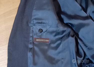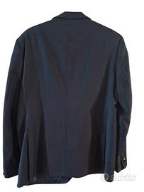 Giacca blu scuro monopetto dal taglio classico. Marca City Time. Ottime condizioni. Taglia 54. Due bottoni frontali. Taschino a filetto sul petto e due tasche laterali con patta. Maniche con bottoni decorativi sui polsini. Lunghezza: 75 cm Lunghezze delle maniche: 64 cm Spalle: 47 cm