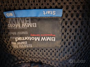 giacca BMW start, usata in pelle molto spessa e pesante, taglia 60,veste come una 58, taglio sportivo,ha le protezioni spalle e gomiti. possibilità di spedizione gestita da me con poste italiane