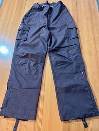 Pantalone taglia L : due tasche sulla coscia, due tasche laterali, cerniere per indossare comodamente gli scarponi, ghetta interna antineve alla caviglia. Streps con velcro in vita e alle caviglie per regolare la vestibilità.