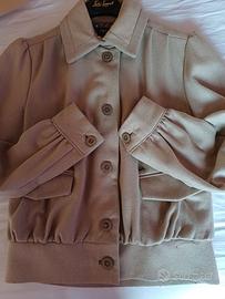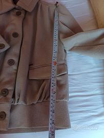 Elegante giacca corta modello bomber del brand Amy Gee. Il capo presenta un raffinato color sabbia/beige, ideale per la mezza stagione o come sottogiacca strutturato.