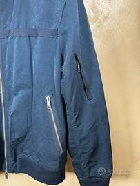 Descrizione del Prodotto Caratteristiche Principali: • Marca: Armani Exchange (A|X) • Modello: Bomber leggero stile "Harrington" con collo alto a doppio bottone. • Colore: Blu Navy profondo. • Taglia: L (USA) / G (MEX/BRA) - Corrisponde a una 50/52 italiana (Vedere etichetta: 180/104Y). • Codice Modello: 3ZZB07 ZNCYZ Dettagli di Design: • Chiusura: Full-zip frontale con doppio cursore logato e bottoni a pressione sul colletto. • Tasche: Due ampie tasche frontali con zip e una pratica tasca tattica sulla manica sinistra. • Finiture: Fascia orizzontale in tessuto tono su tono sul petto e sulla schiena; polsini e fondo in maglia elasticizzata per un fit perfetto. • Materiale: Tessuto tecnico resistente (mix Poliestere/Poliammide) con fodera interna logata, ideale per le mezze stagioni (primavera/autunno). Stato dell'articolo: La giacca è in ottime condizioni. Il tessuto esterno mantiene la sua lucentezza originale, le zip sono perfettamente funzionanti e le etichette interne sono integre e leggibili. Un capo versatile, perfetto sia per un look casual che per un outfit più ricercato.