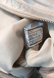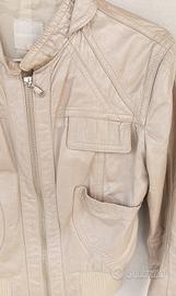 Giacca bomber in vera pelle, donna Imperial, tg M, beige e oro, made in Italy, vintage. Misure: distanza spalle 38 cm, distanza ascelle 45 cm, lunghezza 55 cm