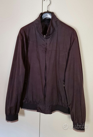 Giubbotto leggero da uomo di colore scuro (nero? Fumo? Blu notte? ...) il cui tessuto in misto cotone è cangiante a seconda delle condizioni di luce.