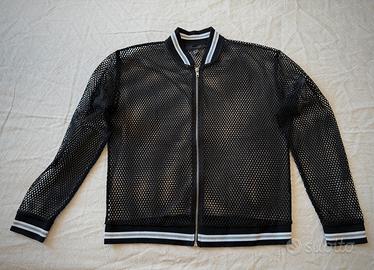 2 giubbotti corti, neri, stile casual con chiusura lampo, uno con paillettes e l’altro in rete.