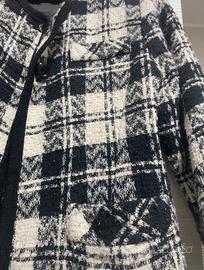 Giacca boucle bianca e nera a quadri e in cotone.