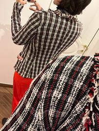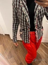 Giacca in cotone lavorazione bouclé con frange. Taglia 42.