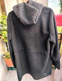 Giacca boucle nera con cappuccio e bottoni neri lucidi molto bella dal vivo taglia XL