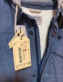 Giacca Burton taglia L, unisex, color jeans, chiusura cerniera e bottoni, tasche laterali con cerniera e tasca lato cuore con bottone. Nuova con cartellino