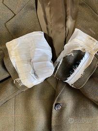 Taglia 48 ITA/DE, 32x36 GB/USA, F/B 42 Maniche: 65 cm; Spalle: 55 cm; Lunghezza 80 cm. Condizioni non delle migliori, come potete vedere dalle foto. Per ulteriori dettagli non esitate a contattarmi, posso tranquillamente inviare altre foto descrittive del prodotto. Gabriele - 3311580993