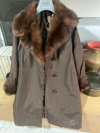Giacca capotto caldo, interno in pelliccia di ocelot, collo e maniche in zibellino. Sartoriale.