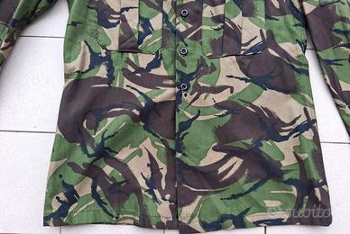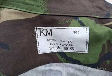 N887)Giacca - camicione vintage da combattimento mimetismo tipo DPM di ispirazione britannica, ex dotazione originale Esercito Olandese. Mai usata in condizioni generali davvero ottime (possibili minimi segni di immagazzinaggio), tutti i bottoni funzionanti. Taglia militare riportata non molto chiaramente (37), può forse essere attorno ad una Medium-large. Queste sono le principali misure orientative e non impegnative: spalle cm. 45 - petto cm. 54 - manica cm. 67 - lunghezza totale da colletto parte superiore a fondoschiena cm.84 (senza nessun impegno su taglie, vestibilità ecc. la cedo esclusivamente come oggetto da collezione, grazie.Etichetta originale presente, prodotta nel 1998. Ottimo pezzo.