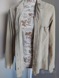 Blazer a camicia dal taglio dritto e vestibilità comoda in morbida pelle di renna. Il blazer è rifinito da bottoni. La taglia è una S/M. Gli unici difetti sono una lieve usura sulla renna e la scoloritura dell'etichetta taglia, ma il capo è in buone condizioni. MISURE