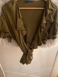 Giacca, camicia di polo Ralph Lauren, taglia M, colore verde, salvia si chiude a portafoglio, manica tre quarti con Rouge, indossata una volta, si consegna lavata e pulita