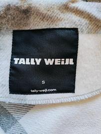 Giacca-camicia a quadri da donna Tally Weijl, morbida e delicato sulla pelle, comoda da indossarein primavera. Chiusura frontale con bottoni grigi, 2 tasche sul petto con patta e bottone e 2 tasche laterali nascosti nella cucitura, stampa a quadri bianchi e grigi 8pattern tartan), polsini con bottone, colletto a camicia. Vestibilità: oversize/relaxed fit. Si abbina perfettamente a T-shirt semplici, crop top, leggings, pantaloni stretti, jeans casual, gonne, stivali al ginocchio o tacchi alti per un look chic. Usata una sola volta. Taglia: S Misure: da spalla a spalla: 52 cm mezzo torace: 60 cm lunghezza capo: 74 cm