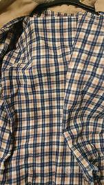 Giacca modello camicia taglia M misure spalle cm 50 da ascella ad ascella cm 60 lunghezza totale cm 70 colore beige sabbia con fodera a scacchi.