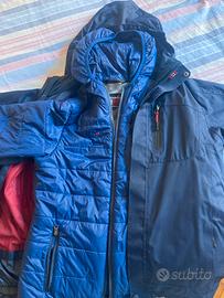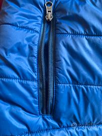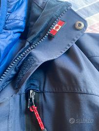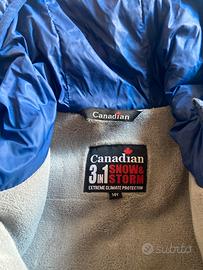 Giacca Canadian blu 2 pezzi separabili. Esterno impermeabile e antivento. Interno in piumino e pile. Unisex. Taglia 14 anni. Veste una small da donna.