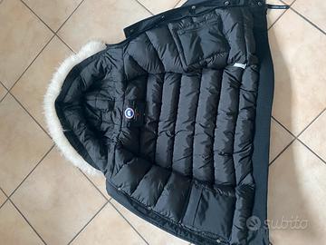 Giacca Canada di colore nero con cappuccio con pelliccia bianca rimovibile, perfetto per l'inverno •Imbottitura invernale • cappuccio regolabile con pelliccia •Tasche : frontali e interne e sulla manica • Zip+bottoni Tutte le taglie disponibili dalla XS alla XXL Nuova mai indossata