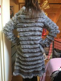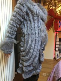 Giacca lunga o cappotto in lapin e lana chiusura con ganci colore grigio. Capo nuovo mai usato taglia M/L Molto morbido elasticizzato