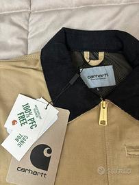 Vendo giacca Carhartt originale nuova con etichetta, colore beige, ideale per la primavera. Modello comodo e resistente, perfetto per uso quotidiano e streetwear. Vestibilità regolare.