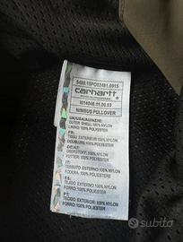 modello (I014046) e banda olografica di sicurezza. • Condizioni: Ottime, usato pochissimo. Non presenta macchie, strappi o segni di usura. • Caratteristiche: • Tessuto esterno in Nylon Supplex idrorepellente e antivento. • Rivestimento interno in rete (mesh) per una migliore traspirazione. • Tasca a marsupio centrale con zip nascoste. • Apertura laterale con zip per facilitare la calzata. • Cappuccio e bordo inferiore regolabili con cordini elastici. • Logo Carhartt WIP cucito sul petto. Misure (prese in piano) • Spalle: circa 48 cm • Ascella-Ascella (Petto): 57 cm • Lunghezza totale (dalla spalla al fondo): 70 cm • Lunghezza manica (dalla spalla al polsino): 66 cm #carhartt #carharttwip #nimbus #nimbuspullover #streetwear #windbreaker #giaccasportiva #vintagestyle #casual #outdoor