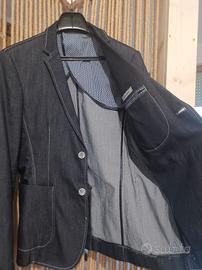 Vendo per inutilizzo giacca casual con toppe in contrasto, tessuto color jeans, usata in poche occasioni, in perfetto stato.