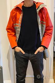 La giacca non è mai stata usata ma è stata molto tempo dentro una barca quindi all’interno (cappuccio) presenta delle macchie di umidità. Fuori è come nuova