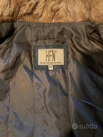 • Pelle color cioccolato + collo e polsini in volpe miele