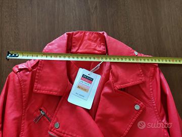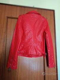 Vendo bellissima giacca stile "chiodo" (biker jacket) in morbida ecopelle di colore rosso vivace. Il capo è assolutamente NUOVO, mai indossato, ancora completo di cartellino originale (Art. AW595). Condizioni: Perfette, nessun segno di usura. Dettagli: Cerniere metalliche silver resistenti su tasche e polsini, mostrine sulle spalle, pratica cintura in vita. Misure precise: Lunghezza totale circa 56 cm (come visibile in foto). Vestibilità consigliata per una taglia S o S/M italiana. Qualità: Materiale sintetico di ottima fattura, morbido al tatto, effetto pelle reale. Stile: Un classico intramontabile, pezzo grintoso per la primavera o l'autunno. Spedizione veloce e imballaggio curato. Disponibile per consegna a mano o spedizione tramite TuttoSubito