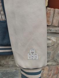Giacca college colore grigio e beige,lana ed ecopelle, chiusura bottoni,tasche laterali.Taglia M.Nuova mai indossata.