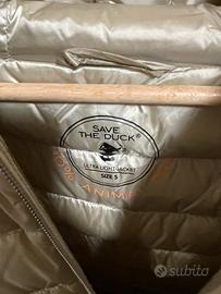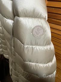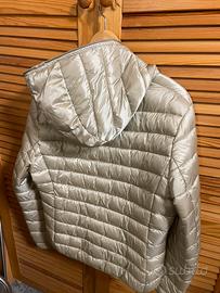 spledido piumino mai usato taglia 5 donna 100 grammi color oro-panna con cappuccio . morbidissimo