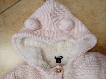 giacca con cappuccio con pelliccetta interna, colore rosa pallido. età 12 mesi