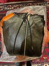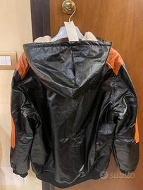 Giacca imbottita da uomo, stile chiodo, in ecopelle nera e terracotta, tg L/LX, nuova e mai indossata, vendo per acquisto e taglia errati e impossibilità di reso.