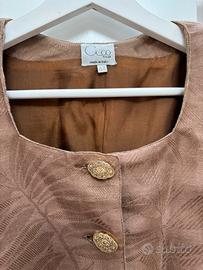Giacca usata poche volte Marrone con dettagli floreali Bottoni dorati Veste stretta