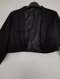Vendo giacca/coprispalle nera taglia S made in italy 95% cotone 5% elastico. Ideale sopra abiti estivi, senza bottoni con maniche a tre quarti.