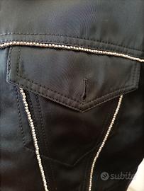 Stupenda giacca corta Liu Jo di colore nero satinato con tasche frontali rifinite con piccoli strass.